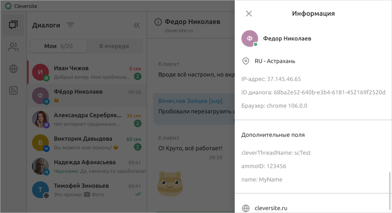 Пересылайте друг другу сообщения клиентов, добавляйте в чат с клиентом более опытных коллег или сотрудников других отделов, переключайте диалог на другого оператора - пользуйтесь всеми возможностями Cleversite, чтобы получать максимум!