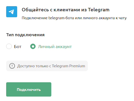 - 1Интеграция с личным телеграм подключается дополнительно к тарифу. Настройка доступна после оплаты опции.