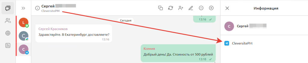 - Для чатов, которые поступили в личный аккаунт в качестве источника будет ваше имя пользователя